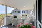 Outside you have a fenced in yard with panoramic ocean views of Saco Bay, two picnic tables, a gas BBQ grill, and a fire pit with plenty of seating.