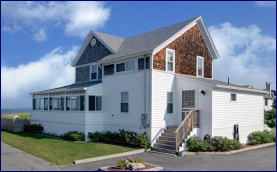 This classic ocean-front Maine beach house has six bedrooms, three full bathrooms, and an outside shower. The first floor has a wraparound enclosed porch with panoramic ocean views and an open-air porch with ocean views. Inside on floor one you'll find a living room, kitchen, dining area two full bathrooms (one with a tub/shower combo and the second with a standup shower), laundry, and two bedrooms (one with a queen bed and the other with a bunk bed). Upstairs you'll find 4 additional bedrooms all with AC splitters. Two of the upstairs bedrooms have queen beds, one has two bunk beds, and the last has a double bed. There is also a full bath with a tub (no shower) on the second floor.